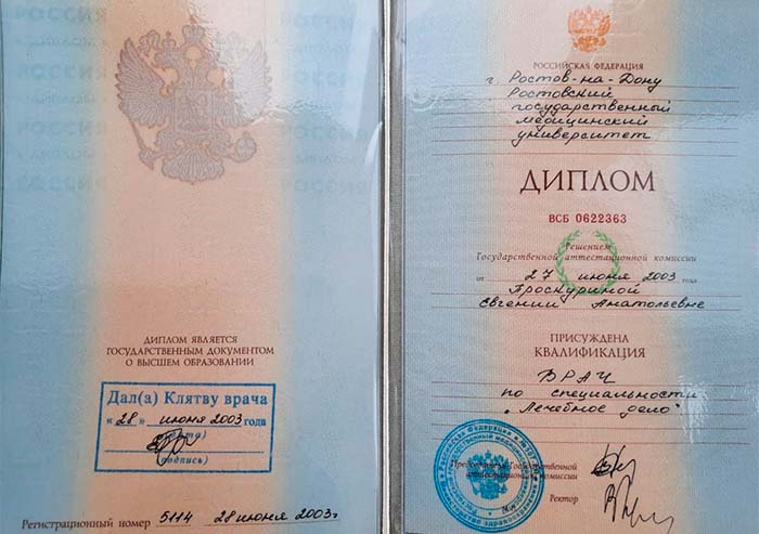 •  2003 г. – Базовое образование: Ростовский государственный медицинский университет (Лечебное дело);